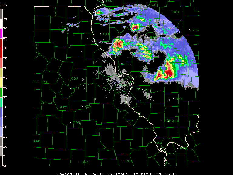 UPDATE May 5 - An NWS damage survey has revealed that this storm produced at least 9 tornadoes in the St. Louis CWA - 6 in the Greenville, IL area (4 F1 and 2 F0) and 3 (all F1) in the Kimmundy, IL area. The St. Louis NWS has posted a summary of the damage survey with tornado track maps here. This damage survey does NOT include damage done in the Staunton-Livingston, IL area, where two semi trucks and a freight train were blown over. I will post additional information as it becomes available.