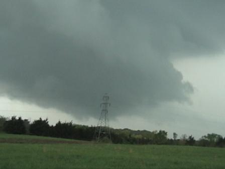 I was pleasantly surprised to find, upon reaching a good viewing point east of Jefferson City around 5:20 or 5:30, that I had a great view of an impressive wall cloud right in front of me, to my E or ENE. About 10-20 minutes earlier, radar had placed the circulation near Bonnets Mill, and the wall cloud I was watching would have been a little south of there. Here is a video capture of the wall cloud when I first arrived. To the south of the wall cloud, to my SE, was some rising scud and general violent cloud motion; it was harder to tell of the wall cloud was rotating but its rear side did appear to be moving to the right, or south. Here is another video capture about 5 minutes later; the wall cloud looks slightly less organized and has moved to the right (S or SE) from its earlier position. After a few more minutes I hear at 5:40 that the TOR warning for Osage Co. has been reissued, with the circulation indicated near Rich Fountain, about 10 miles to my SE. Time to move!