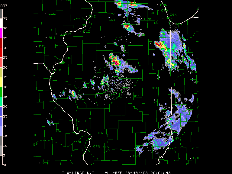 Originally the models had pinpointed SE IL as likely to have the best instability and shear, but steady rain through much of the day had really worked over the atmosphere there. But storms began to fire over northern IL and southern WI, where clearing and heating had occurred. SPC issued a MCD a little before 1:00 indicating likely WW for central and norhtern IL. I checked the radar and saw a cluster of strong storms just south of the Quad Cities. These were in the warm, unstable air and would be fairly easy to intercept since they would move SE or SSE and I would drive NNE, rapidly closing the gap. At 1:45 I headed out, with a preliminary target somewhere between Bloomington and Decatur.