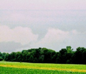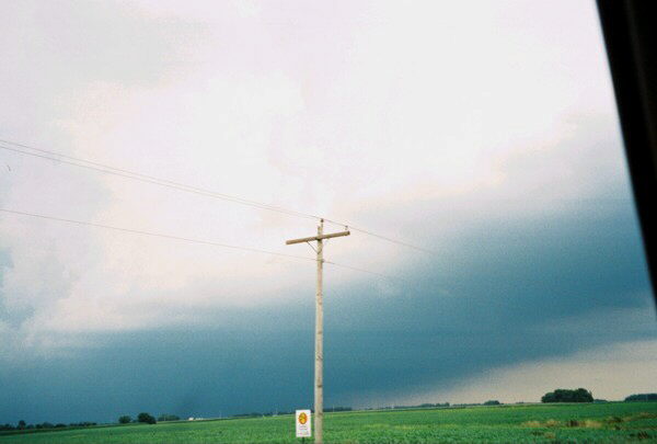 I was doing various stuff on the computer this morning and boy was I surprised when I looked at the radar around 11 and saw a very strong storm just 30 miles or so to my north, in northern Macoupin County, IL. So I grabbed my stuff and headed out, and ended up chasing the storm from around Litchfield, IL to Vandalia, IL. Here is a picture taken just southeast of Hillsboro. This storm had lots of scud, a couple small non-rotating wall clouds, and loads of CG. Just north of Vandalia it produced a "look-alike" lowering that probably would have fooled someone had there been a crowd out looking at it, which there wasn't. I got to watch it all of 30 seconds before it disappeared in rain. Here is a photo of this lowering, contrast slightly enhanced. Since I only saw it for 30 seconds I cannot say for sure that it was not a funnel - it does kind of have the look - but given that there is a lot of other scud around it, and there were no radar indications of SVR at this time, I think it is probably just scud.