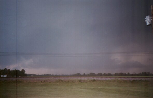 My last stop was at a side road somewhere near where route 4 crosses I-55 - don't recall exactly where, but it would have been around 5:40-5:45. I thought I saw a beavertail and an RFD slot in some of the updraft base to my NW. Here is a photo and some additional commentary. Other updraft base was overhead and just to my west - some of the lowest general updraft base I've seen - these storms were definitely surface-based! But then I was hit with the first outflow I'd been in all day, and I was just on the leading edge of this updraft base. I took this to mean the storms were going outflow dominant, and thought it unlikely I'd see anything more here. I decided that what I had seen were just outflow features, and headed south to go home. In retrospect, I'm not so sure that is true. This structure may have been the beginnings of the meso that later produced tornadoes north of Greenville and south of Vandalia. Maybe the outflow was RFD wrapping around the storm. At this time, though, I also heard reports that the storms had generally weakened. Since I had obligations at home, I decided to call it a chase.
