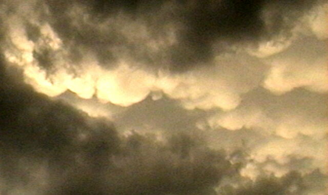 7:30 - At edge of Edwardsville, I photographed the increasingly spectacular sunlit mammatus on the back side of the storms. (This photo, though not bad, does not do it justice - it was very impressive, stretching a long distance through the sky from the NNW to the SSE) I also got some video and got a couple video snaps of the sunlit mammatus, which turned out somewhat better. A nice end to an interesting and enjoyable day.