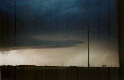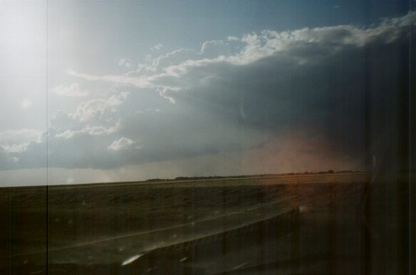 6:17 – heading N on 183 for possible intercept near Hobart. Start to see other chasers as soon as I'm on 83. Here is what the storm looked like at this early stage - low-topped, rather high based, and not at all impressive - but the shearing off of the storm toward the NE told me the shear was conducive to supercell development if the storm could get going.