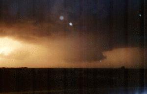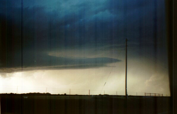 6:30 – Storm clearly outflow dominant and weakening - but some people are still watching and videotaping it. I stop for gas and much-needed potty break. I assure concerned staff of gas station that storm is weakening and they are not in danger. Outflow is several miles ahead of main precip area now. After filling up, I decide it is safe to poke N on 69 through Choteau and up to turnpike to start toward home. Storm is now an outflow dominant squall line, but front edge is very curved at it occurs to me that northern part of it may be evolving to bow echo. From here all the way to stop for the night, I see occasional nice anvil crawlers.
