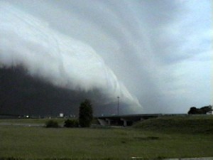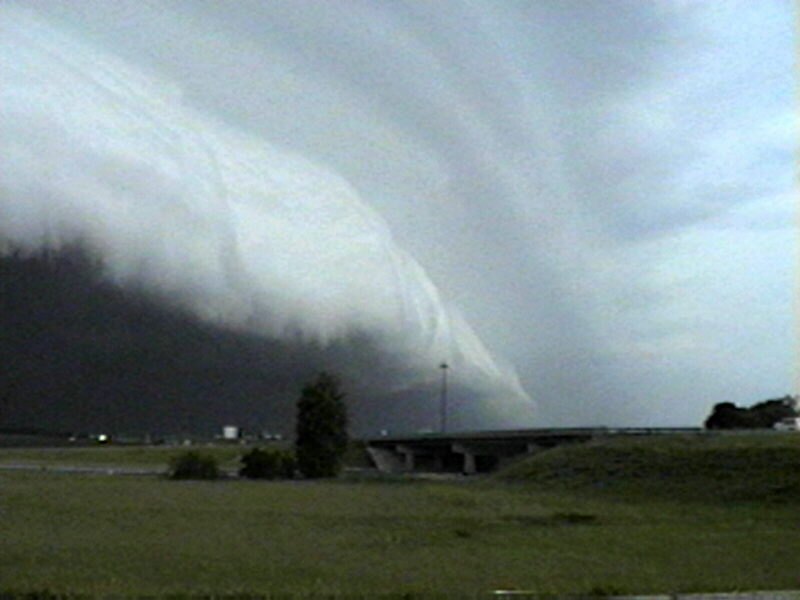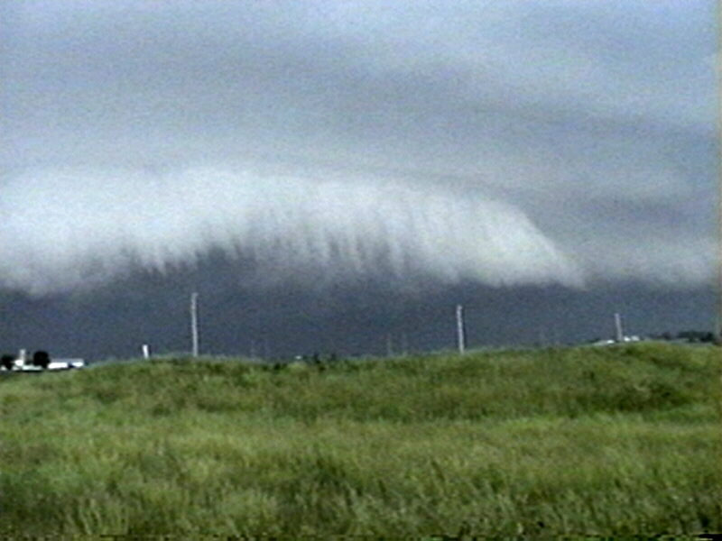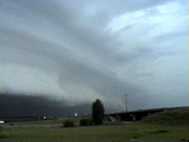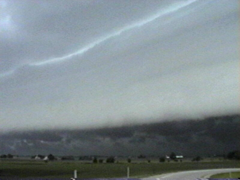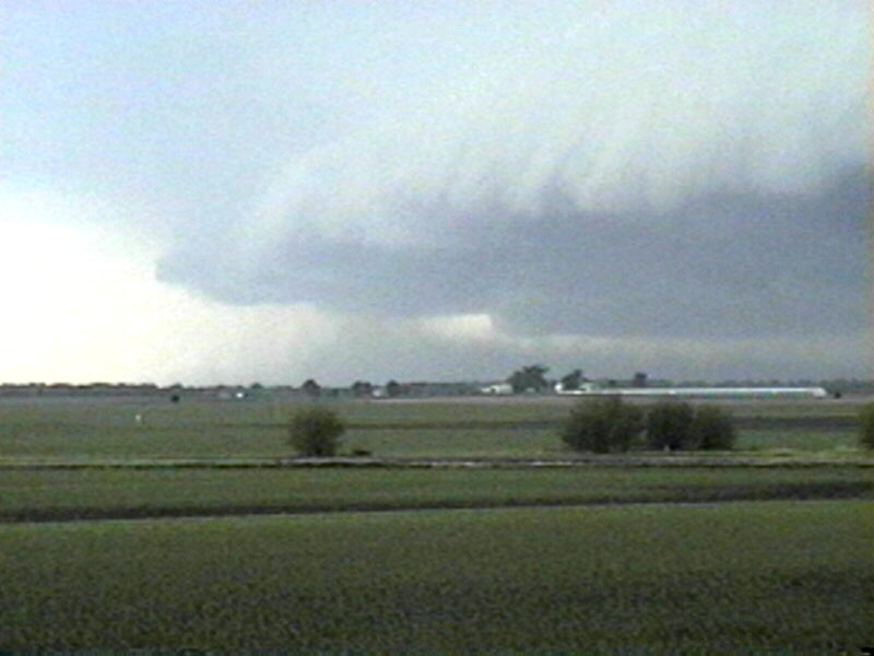 Although I had a commitment at work until early afternoon, this was a day when I knew I could chase after about 1:30 and had been hoping some chase weather would occur. I was not disappointed. This would, in fact, turn out to be a very enjoyable, though non-supercell/non-tornado, chase day, a day in which I would see and videotape what may have been the most spectacular gust front/shelf cloud I have ever seen.