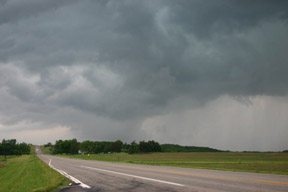 My morning analysis of model output showed that, while all storm parameters looked good througout eastern Kansas (and nearby areas as well), the models seemed to indicate more isolated, intense precipitation in the area north of TOP, and this area would also have better forcing and less cap. Turned out it had too much forcing and not enough cap, but I was not thinking that way when I started out. I also did not want to get into chasing NW MO, which is lousy chase country (though it turns out NE KS is not a lot better.) Anyway, for the above reasons, I decided tentatively that my target would be northeast Kansas, probably starting out a little north of TOP. This area, as it turns out, did produce the best tornado of the day, but it was early, quick, and not easy find from among the several storms that popped up almost simultaneously.