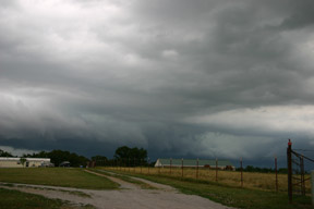 Here is a picture of the shelf cloud taken from a mile or two south of California, MO a little before 5:00 p.m. Around the time this picture was taken, the storm produced hail to 1.25" and a wind gust to 60 mph.