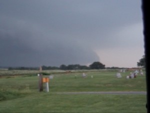 I was on an HP supercell in SW IL from near Dupo to east of Pinckneyville. It never could quite tornado, but did produce wind damage in Jefferson Co., MO and in Randolph and Perry Counties, IL, as well as flash flooding in south St. Louis Co., MO and in Perry Co., IL. As it collapsed around 5 p.m., it dropped in 2.75 inches of rain in 30 minutes in Cuitler, IL.