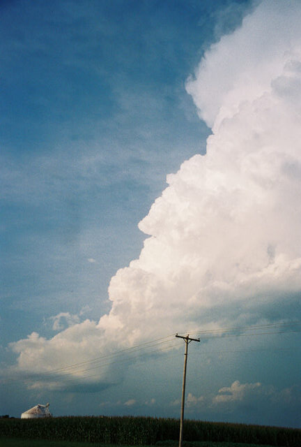 I had a meeting I couldn't miss at work until 4 today, so got a very late start. Too late, as it turns out. The cluster of storms that had earlier produced an F4 tornado and hail upwards of 4 inches in diameter was still going strong near Bloomington, IL a little after 4, so I decided to blast north and try to intercept. It looked good until I was within about 20 minutes of it - at which time it weakened and sped off to the SE. Since I didn't have radar, I had no way to know it had evolved into a bow echo and the strongest part of the storm had shifted off even farther to the SE than the storms I could see, which had obviously become multicellular.