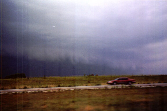 Around 6:15 or 6:30 (not sure of exact time), I stop at the first exit east of Jacksonville, quickly photograph the shelf cloud and some dust clouds under it, then blast east again as it hits me within a couple minutes.