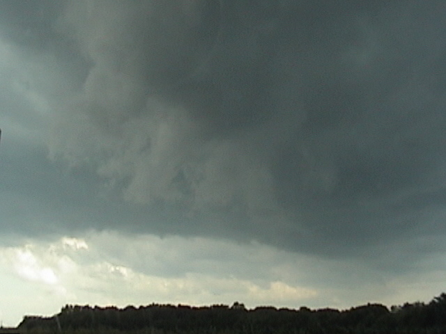 I got some video captures of severe HPish storm between Carlinville and Litchfield, IL on April 19, 2002. It had quite a bit of CG lightning and a nice inflow band. It also formed this lowering which evolved into a large inverted-pyramid shaped lowering about halfway to the ground - which then wrapped up in rain and disappeared. It weak but rather persistent rotatation on radar, and along an E-W path through Carlinville near the area of rotation, there were a number of large hail and wind damage reports.