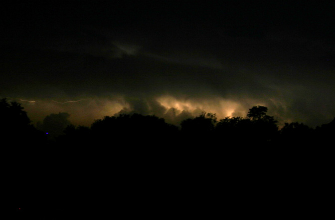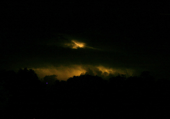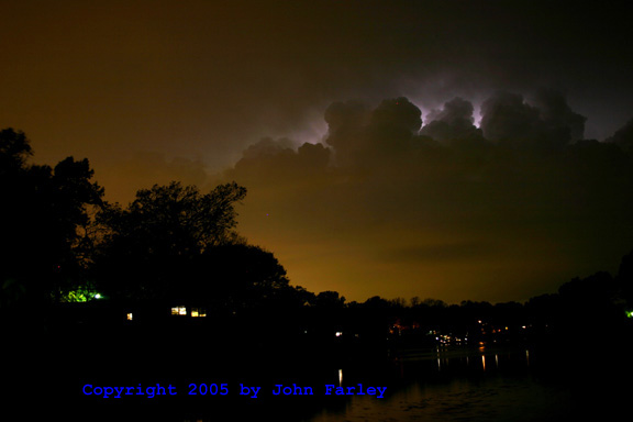 ADDED NOVEMBER 9, 2005! On the evening of November 5, 2005, I got a couple nice lightning shots looking across Dunlap Lake as a line of severe-warned storms approached Edwardsville. In this shot, lightning illuminates updrafts of the approaching storm. As the storm got closer, CG and CC lightning occurred, as the gust front approached.