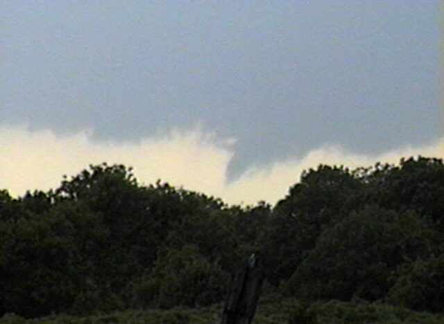 On June 12, 1998, I photographed this possible small, brief funnel cloud from across the street from my house. It was under a storm that developed behind (WNW of) a large supercell that had moved through Florissant and Collinsville earlier.