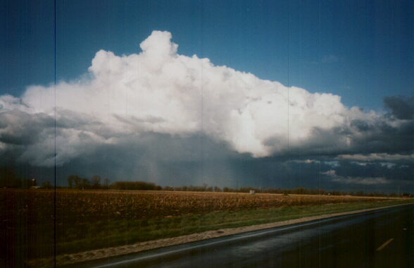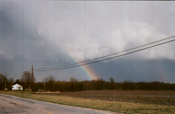 Here is a nice rainbow shot, taken near Benld, IL in March, 1998. I also photgraphed this cold-core cumulonimbus with front-lit precipitation shafts as it moved away from me that day. This cluster of storms later produced 1/2 - inch hail in central Illinois.
