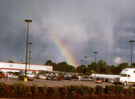 Here is another nice rainbow, again from a cold-core storm. This picture was taken May 23, 2001 in Glen Carbon, IL. Cold-core storms like these are great rainbow producers. Occasionally they also produce damaging wind, as some in Illinois did this day, and they can be prolific producers of (usually small) hail.
