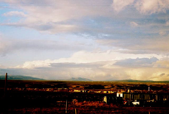 ADDED FEBRUARY 26, 2005! This picture looks like a line of thunderstorms, but actually it is a convective snowstorm over the Sangre de Cristo Mountains in far northern New Mexico. I took this picture looking NNE from about 10 miles west of Taos the day after Thanksgiving, 2005, after skiing in a snowstorm for most of the day at Taos Ski Valley. After this system passed over the mountains, thunderstorms did occur on the high plains of northeast New Mexico.