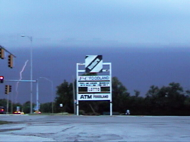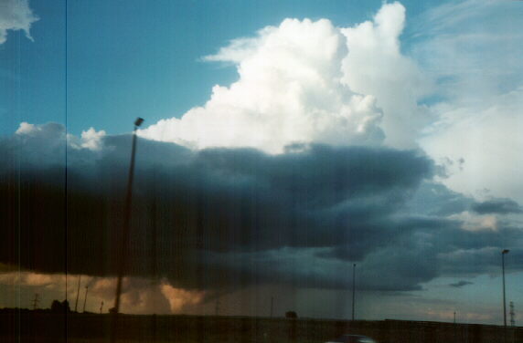 On May 5, 1999, I got this video snap of some sunlit mammatus at the east edge of Edwardsville. Earlier, this storm produced a a beautiful backlit wall cloud as it moved between Collinsville and Highland. Earlier that day, I watched a splitting supercell near Marion, IL. I got this photo of the almost LPish left mover, showing a beavertail, vault, and back-sheared anvil to my south. The left mover weakened quickly after the split, but the right mover produced hail up to 5 inches in diameter near the darkened area at the left of the photo.