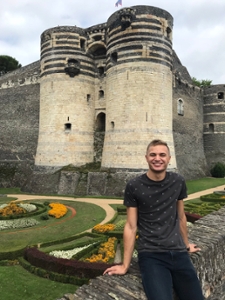 Photos: SIUE senior Ethan Hill stands in front of the Château Frontenac in Québec City, Canada (top photo) and the Château d’Angers in Angers, France (bottom photo).