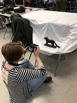 Photo: SIUE student Lillian Stevens photographs an artifact brought in by a Liberty Middle School student.