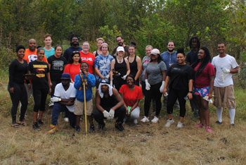 Photo: SIUE students and community volunteers worked together in September to clean up the lot in Washington Park where the future Tiny Children’s Garden will be located.