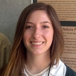 Francesca Stockton, B.S.Francesca joined the lab in spring 2013. Together with Noah Dell and with the occasional assistance of other lab members, Francesca undertook a major redesign and extension of the network of sampling plots in the SIUE Nature Preserve that was originally established by Drs. Minchin and Essner in 2006. Plots were enlarged from 750 m2 to 1000 m2 and some plots that Adam Fritzgerald's Master's research had shown to fall on the borderline between forest of two different ages were moved to fall entirely within uniform-aged forest. In addition, Francesca and co-workers completed the establishment of plots within the bluff corridor region of the Nature Preserve, which has been commenced by Chay Leinweber and Cassidy Miles. Tree data were collected on all plots and shrub/sapling data were collected for all plots that were relocated or newly established. For her Senior Assignment project in fall 2014, Francesca analyzed the tree and shrub data from the redesigned plot network to examine changes in the floristic quality of oak-hickory forest with successional age. Francesca graduated with her B.S. in May 2015 and will pursue a career in resource conservation or wildlife management. In summer 2015 she will be working for the Missouri Department of Conservation as a field technician at the Otter Slough Natural Area, Missouri. |