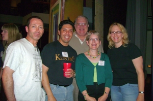 | Stacey Harper (B.S. '04/Theatre), Tony Visser, Greg Conroy (M.A. '97/English), Valerie Goldston, Liz Hitt (B.S. '92/Mass Comm;Theatre Minor) "Gone but not forgotten" - The Quonset Hut was the topic of conversation before snapping this picture. If the name doesn't ring a bell, then you graduated after the year 2000. |
