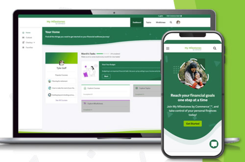 My Milestones by Commerce™ is a financial wellness platform that provides objective, interactive tools, education, and solutions to empower users to take control of their finances.