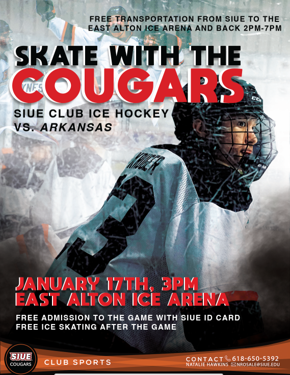 Join us in Alton for an exciting weekend as SIUE Club Ice Hockey faces off against Arkansas University!