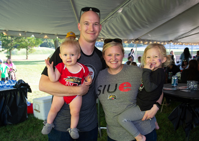Later that afternoon, over 500 SIUE alumni, family and friends gathered outside Korte Stadium for the Alumni Tailgate before the SIUE men’s soccer team took on Belmont University. Guests were treated to live music from local favorite Quarter Draw Band; munched on lots of free food from local restaurants including Big Daddy’s, Ravanelli’s, Bella Milano and Hansen Meat Co.; tasted an exclusive alumni ale from our friends at Recess Brewing; and enjoyed lots of fun activities including face painting, yard games and a bounce house for the kids!