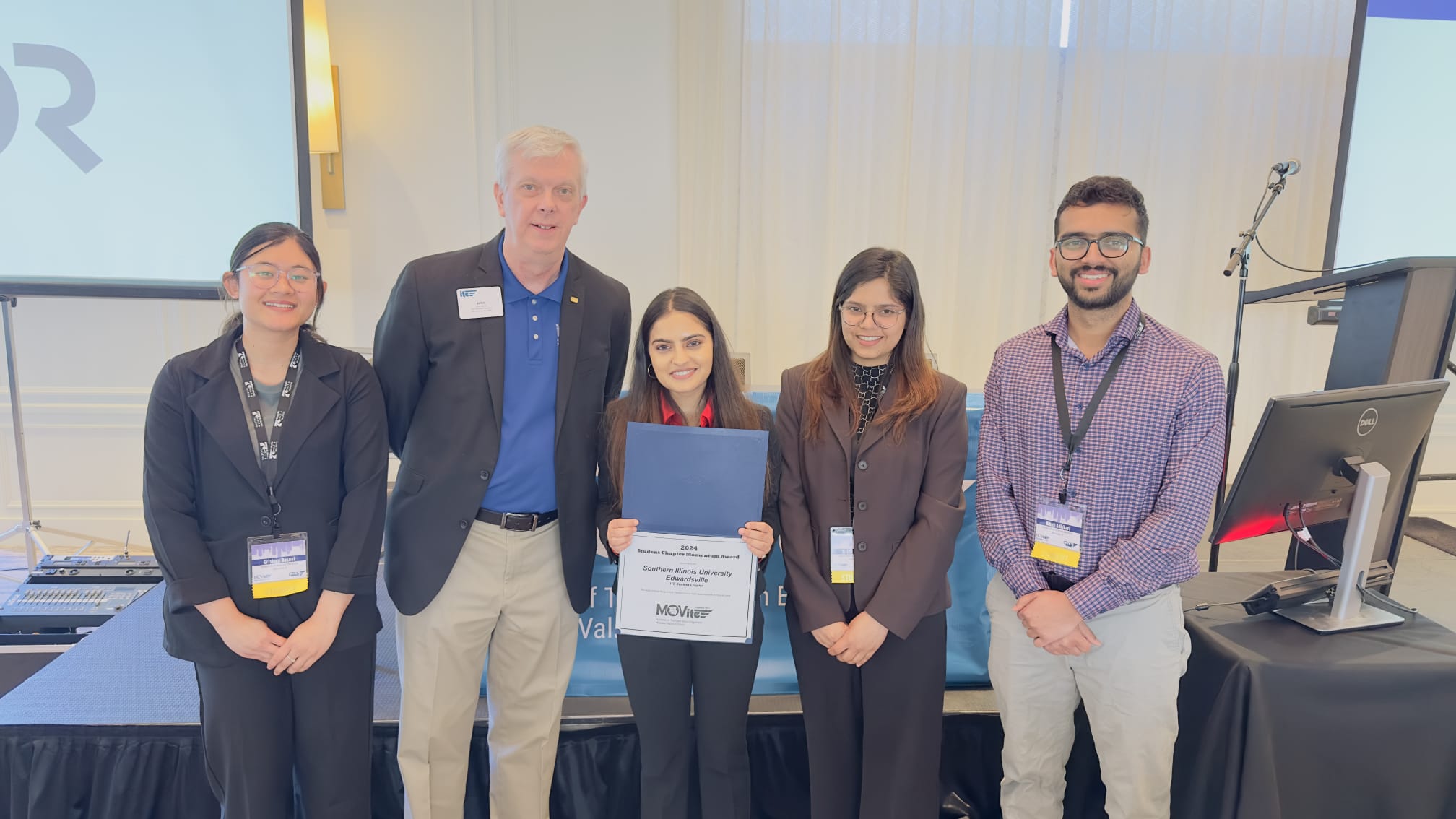 Over the past year, the SIUE Inastitute of Transportation Engineers (ITE) Student Chapter has been actively involved in both on-campus and off-campus outreach activities. The Chapter has invited transportation professionals to campus to share their experiences and insights, broaden our students' understanding of the latest trends and developments in the transportation field. In an effort to promote diversity, the Chapter made a effort to invite more female and minority transportation professionals. These guest lectures have not only enhanced interest among our students but have also served as an inspiration to our female and minority engineering students. The chapter members have been enthusiastically involved in local and regional ITE meetings and conferences, and have actively participated in student activities and competitions organized by ITE. Due to these activities, the SIUE ITE Student Chapter has been awarded this year’s MOVITE Student Chapter Momentum Award. Representing the chapter, President Suprapti Gautam attended the award ceremony on April 18, 2024, during the 2024 MOVITE Conference.