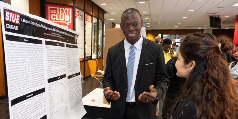 The Graduate School Research Symposium is an annual spring event celebrating student and faculty research at SIUE. Join us and learn more about graduate studies at SIUE, connect with current graduate students, and meet Graduate Admissions staff. We can answer your questions and help you start the application process. Visit admissions staff at the event to receive an application fee waiver.