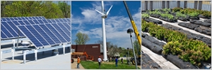 Photo: SIUE solar panels, windmill installation and rooftop garden.