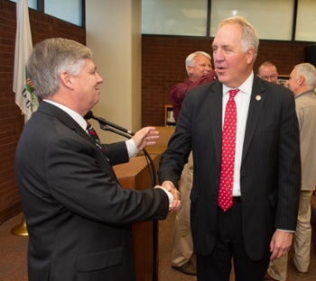 SIUE Chancellor Randy Pembrook thanks Shimkus for his generous donation of his political archival to the University.