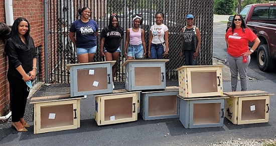 The next project question, as to who would build the libraries, took a pleasant, collaborative turn. “The Girl Scout troop that meets at Greater New Hope Baptist Church in East St. Louis built the Little Libraries,” explained Harper. “Gwendolyn Childs heads up the Girl Scout troop. Gwen’s husband, who is in construction, directed the junior high school girls in building the libraries. We were able to buy the supplies needed through monies given to us by the SIUE Foundation.”