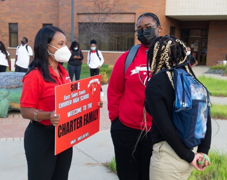 SIUE East St. Louis Charter High School eagerly greeted students to the first day of school on Monday, Aug. 16.