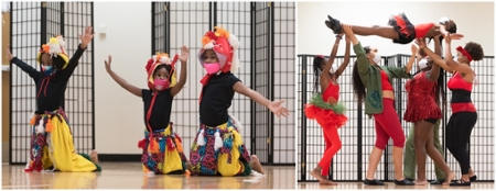 (L-R): Students perform in “Frecube” Welcome Dance, directed and choreographed by Gerald Babatunde Williams, African drum and dance instructor; and “A Christmas Dream,” choreographed by dance instructor Jay’Kayla Winford.