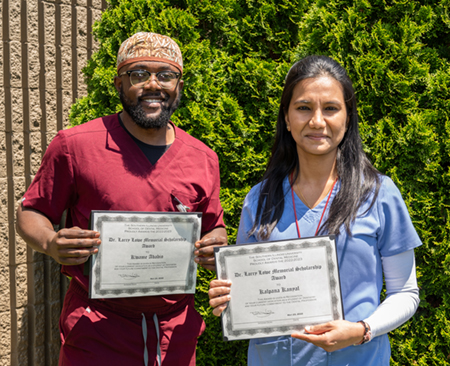 Dr. Larry A. Lowe Memorial Scholarship winners Kwame Ababio and Kalpana Kanyal.