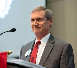 Timothy Schoenecker, PhD, dean of the School of Business speaks to the scholarship and award recipients.