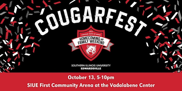 Southern Illinois University Edwardsville Homecoming & Family Weekend has launched with 27 events and more than a thousand registered for the key celebration: the COUGARFEST Block Party. This signature event, complete with the live band Jackson and Mars, food trucks and games, is an opportunity for visitors to the campus community to meet SIUE Athletic Teams in person and participate in family fun. Due to impending weather conditions, organizers have relocated COUGARFEST from City Park in downtown Edwardsville to SIUE First Community Arena, Vadalabene Center Friday, October 13, 5 – 10 p.m.