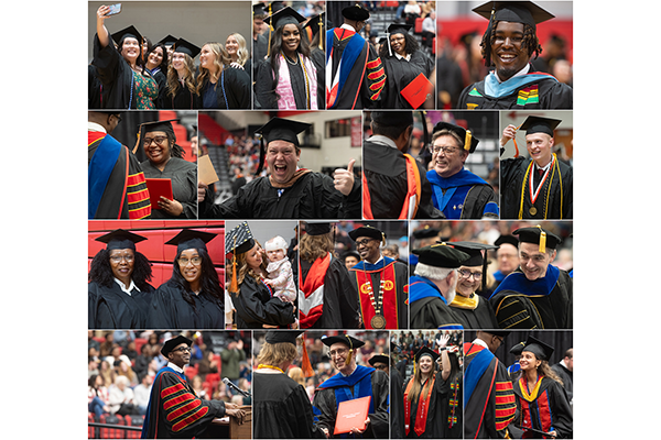 PHOTO: A photo collection of graduates, faculty and Chancellor James T. Minor, PhD, from 2023 SIUE Fall Commencement. Photos by Howard Ash.