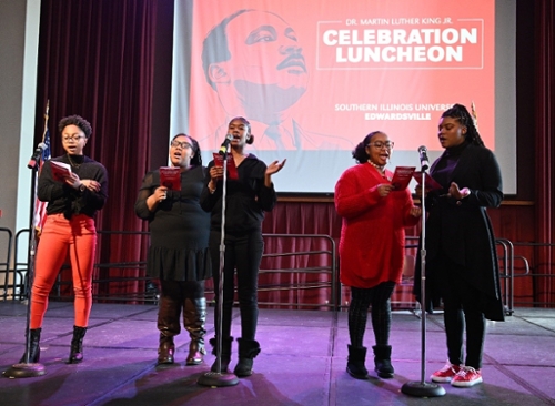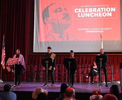 Southern Illinois University Edwardsville celebrated the 41st annual Dr. Martin Luther King Jr. luncheon on Wednesday, January 17 in the Meridian Ballroom of the Morris University Center. Organized by the Kimmel Belonging and Engagement Hub, the ceremony began at 11 a.m. and opened with total praise for “Total Praise,” a hymnal sung by the SIUE Gospel Choir.