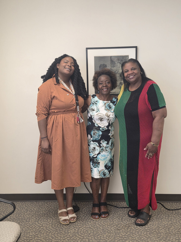 PHOTOS: Amber Davis, LSW, Learning Resource Center Coordinator, community activist Ms. Hattie Hayes and Jaye Willis, Executive Director of The East St. Louis Historical Society