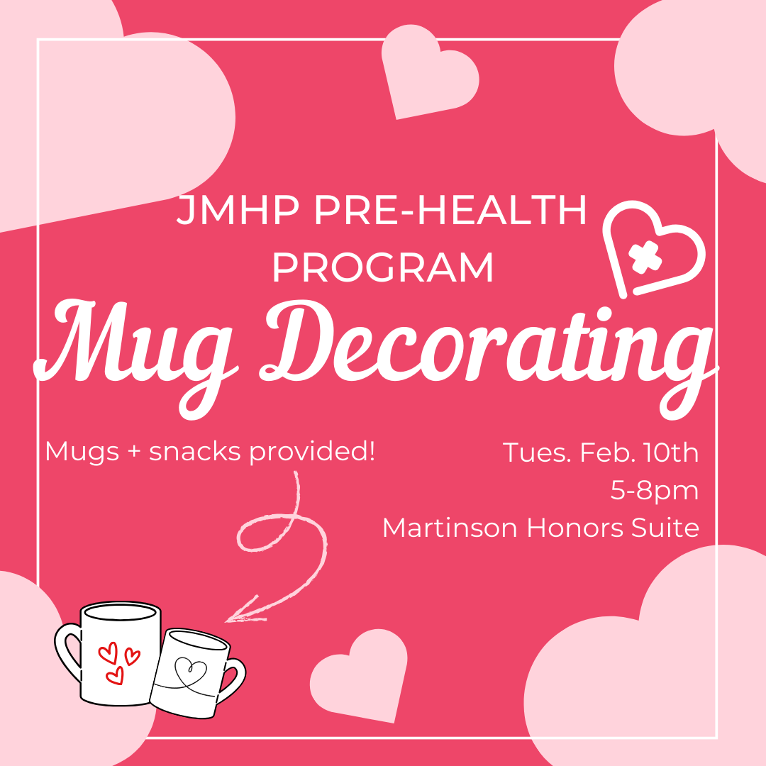 Hey Pre-Health students! We have a Valentine's Day-themed mug-painting activity on Tuesday, Feb 10th, 5-8pm. Insert your own heart-related/pre-health pun here. (Add to calendar)Advising Announcements