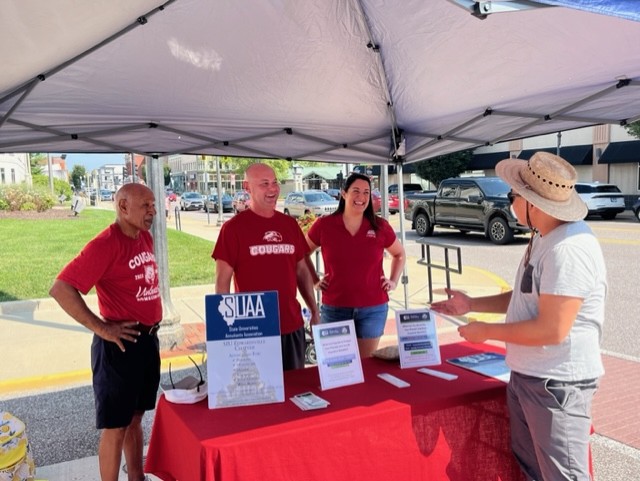 Members of the SIUE Chapter of the State Universities Annuitants Association (SUAA) hosted an information table at the Goshen Market, located in downtown Edwardsville. Visitors were invited to learn more about the advocacy work that SUAA does to protect healthcare and pension benefits for all current employees as well as retirees!