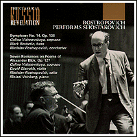 The Fourteenth Symphony is always a lacerating experience, but this performance is particularly concentrated and ferocious. This mood was almost certainly a by-product of events leading up to the time of the concert, an ominous period of freshly gathering repression in which Brezhnev's KGB were closing in on Solzhenitsyn, with whom Vishnevskaya and Rostropovich had been publicly identified since inviting the persecuted writer to move into their dacha with them in 1969. Such a noble gesture carried frightful risk and consequently brought with it an additional burden of fear for Vishnevskaya and her husband. In her remarkable memoir, Galina (Harcourt Brace Jovanovich, 1984), she records David Oistrakh's reaction upon learning that his friends had given Solzhenitsyn sanctuary: