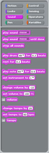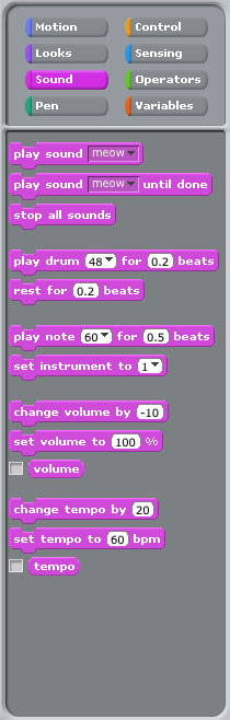 Exercise 2: Use blocks from sounds, motions, and controls. Make your sprite move forward 10 steps, play one drum beat, move back 10 steps, play a drum beat, and then repeat the actions 5 times.