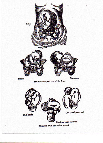 - Twins may have various positions near time of delivery (both cephalic, one breech/one cephalic, one cephalic/one transverse)