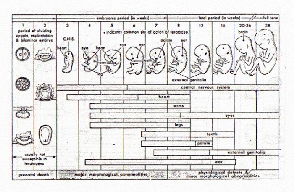 - Major morphological defects occur mostly in weeks 3-8, when lots of structural development occurs