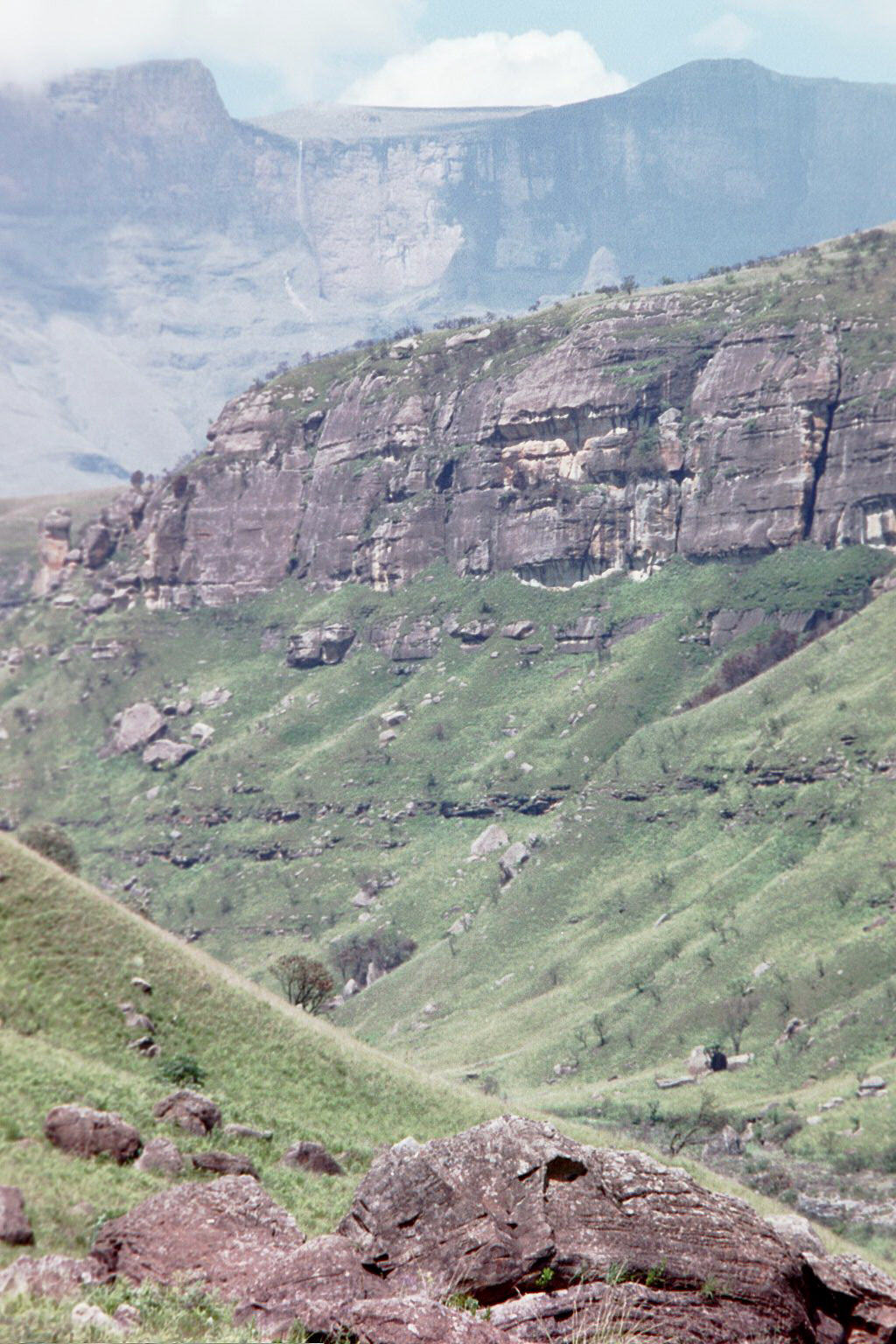 The next day we made our way south to Giant’s Castle. It is also a Natal Parks Board resort, recently renovated. It is the site of Main Cave, one of the three locations of San Rock Art in the region.