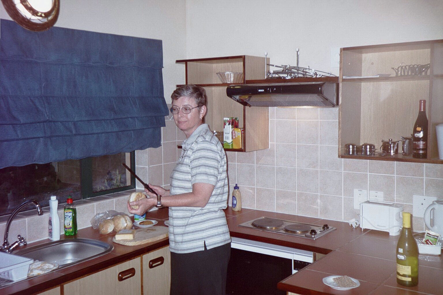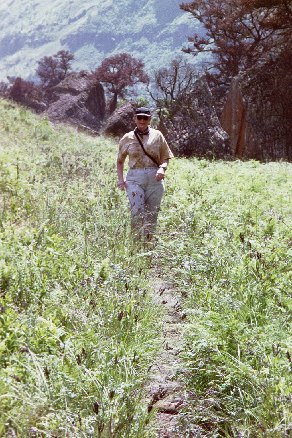 The view from our balcony. The path to Main Cave passes just below our balcony and follows the river, off into the distance. Then you cross the river and climb up to the overhang. What you cannot see are the hundreds of varieties of wild flowers that were all over the hills, every color imaginable. Most of them were the size of a small button. |